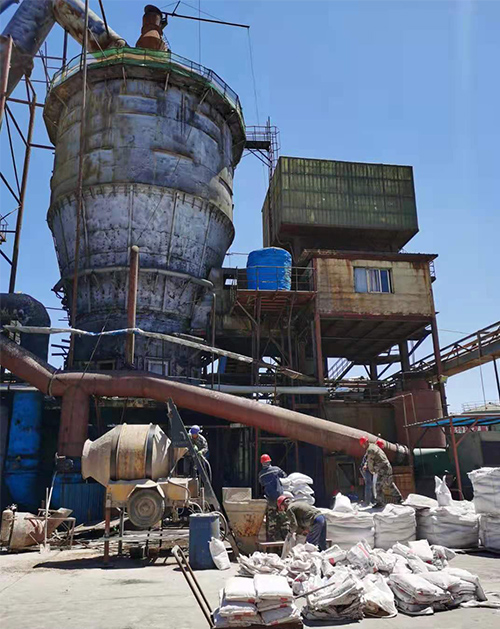 25萬噸硫鐵礦制酸裝置沸騰爐爐頂澆筑施工現(xiàn)場